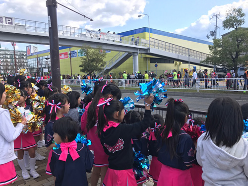 11月19日(日)は神戸マラソンの応援に行ってきました!ノエビアスタジアム神戸の前の特設ステージで、各クラスのダンス披露とランナーさんの応援をさせていただきました。