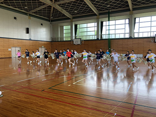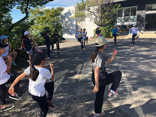 1日目は基礎の動きを練習したり大会の振り付けの練習をしました!