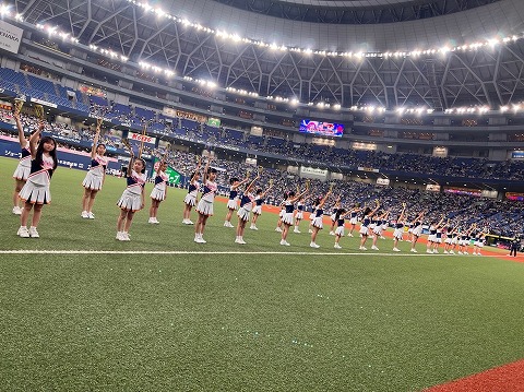 新ユニフォームを着てのパフォーマンス!白いユニフォームがグラウンドに映えてとても可愛いかったです。