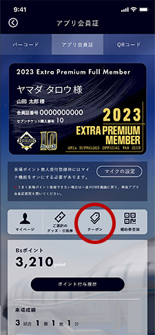アプリ会員証画面