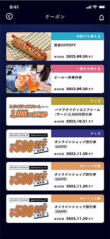 お届けグッズで「2023ハイクオリティサードユニフォーム2,000円割引券」をご選択いただいた方に表示されます。