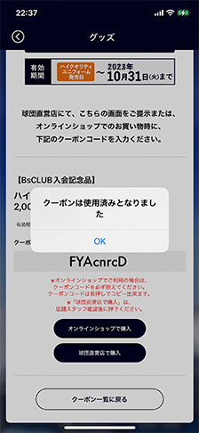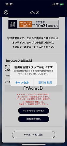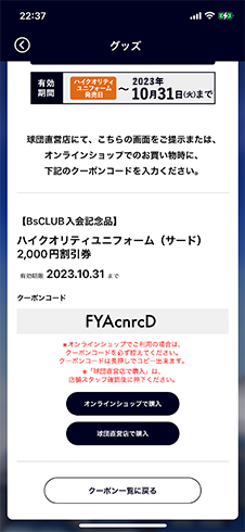 2023ハイクオリティサードユニフォーム2,000円割引券使用フロー