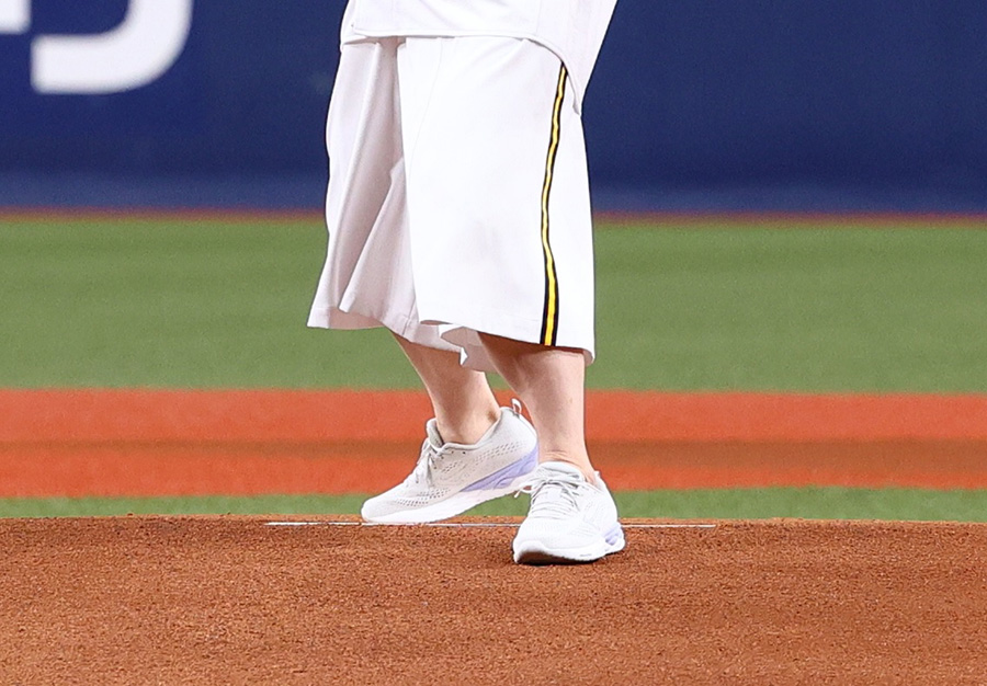 ところで、高橋さんの“野球愛”はこんなところにも。始球式のキュロットは、なんと特注品。真っ白のナース服にユニフォームの襟と同じ、ネイビーとゴールドのラインが入っています。ナース服を手掛ける会社の知人が特別に手縫いしてくださったそうです。今回の始球式への熱意を物語る準備の徹底ぶりに、球団職員一同大感激でした。(西田光)