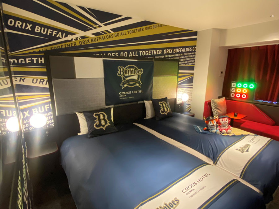 大阪市中央区のクロスホテル大阪に、1日1室限定のオリックス・バファローズコラボルーム「Bs ROOM」が誕生しました。7月21日に予約を開始したところ、お客様から続々と問い合わせが入り、メディアからの取材依頼も多く寄せられているそうです。部屋の随所にバファローズや京セラドーム大阪の魅力が散りばめられた、ファン垂涎の一室。どんなお部屋か潜入取材してきました。