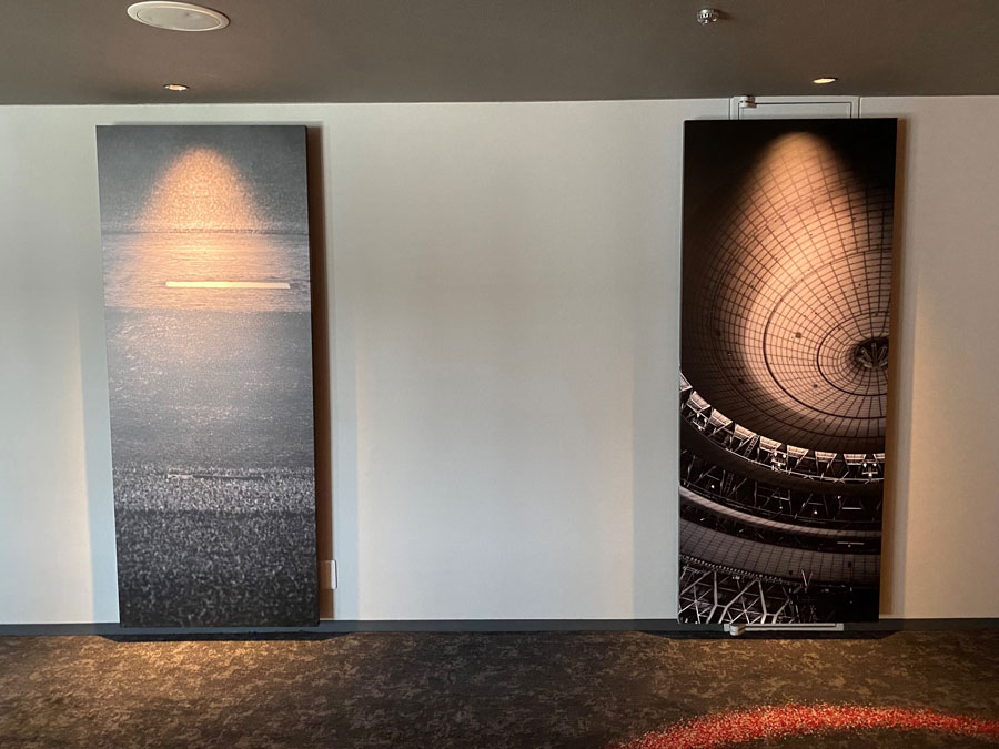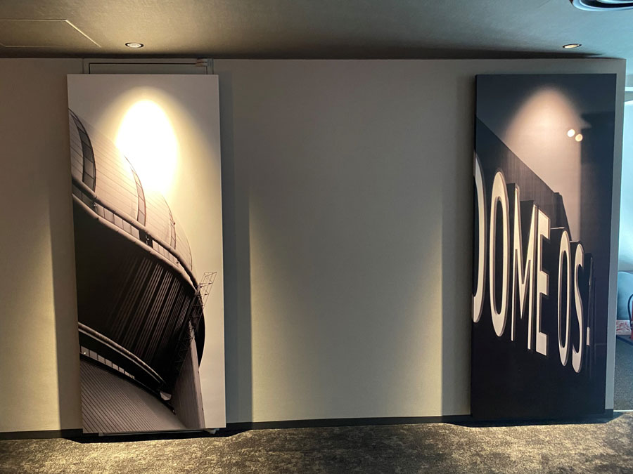 早速「Bs ROOM」のある9階へ。クロスホテル大阪では各フロアのエレベーターホールに大阪の名所のパネルを置いているそうです。9階には、元々京セラドーム大阪のパネルを飾っていたことから、この階での「Bs ROOM」の設置が決まりました。