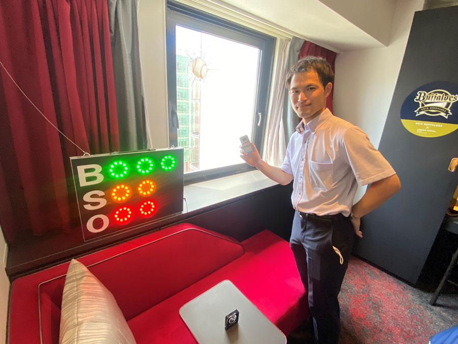 今回のコラボルームは、リーグ連覇、そして日本一に向けた戦いを盛り上げようと企画。昨年末ごろから本格的に計画され、半年かけてじっくりと作り上げられたこだわりのお部屋だそうです。クロスホテル大阪総支配人の若山智さんも「他球団様でもコラボルームは作られているそうですが、思いの入れ方は当ホテルがナンバーワンのはず」とファン目線の部屋作りに自信を覗かせます。