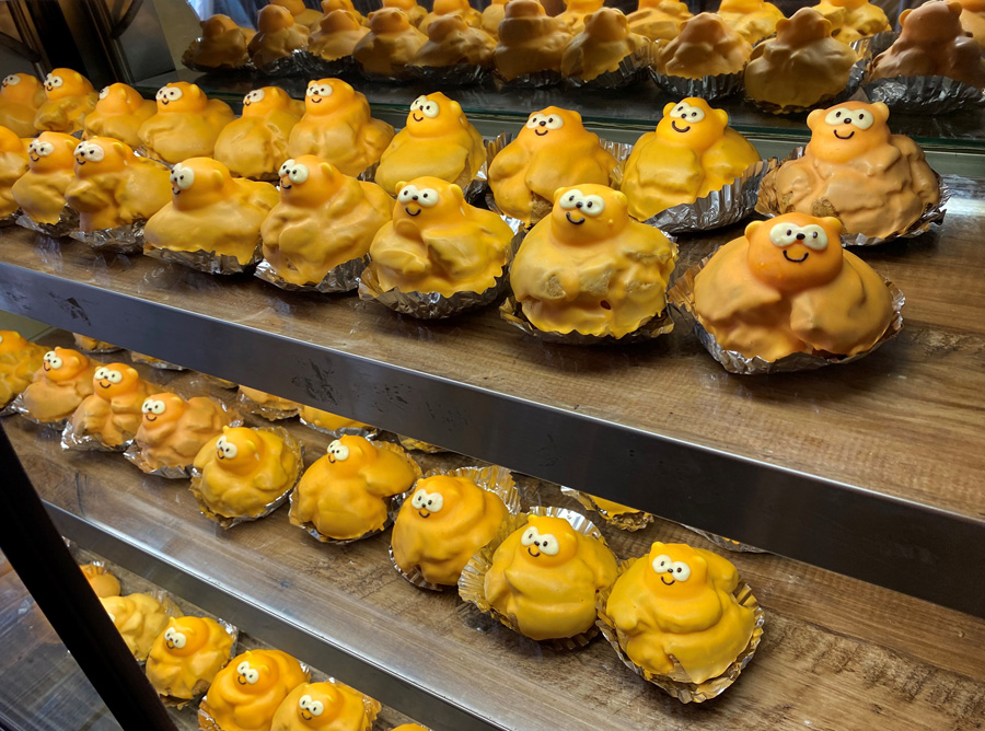 数量限定の「たぬきケーキって呼んだ?特製バファ☆ポンケーキだよ!」は、昭和時代に人気が高かった「たぬきケーキ」をバファ☆ポン風にアレンジ。ケーキの中身は秋らしく栗のクリームが入ったシュークリームです。開発に特に時間がかかったメニューの一つだそうで、吉田さんは「バファ☆ポンの顔立ちはすごく繊細。できるだけ可愛く親しみあるお顔に仕上げるために何度も試作を重ねて今の形にたどり着きました」と達成感ある表情で話します。