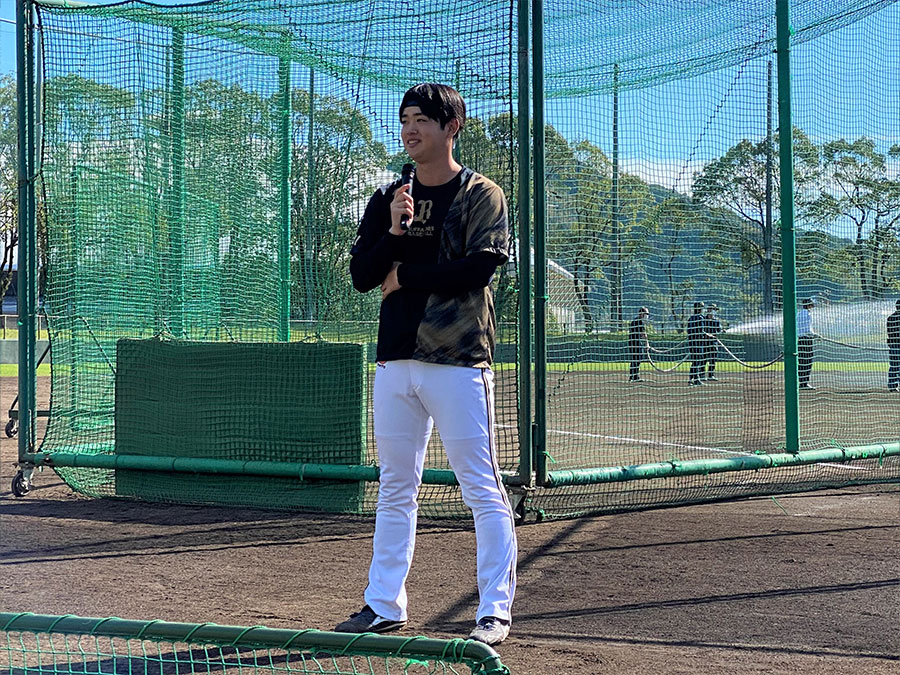 高知秋季キャンプの舞台、高知市東部総合運動場野球場グラウンドで11月5・6日のランチタイムに開催された、紅林選手・太田選手の質問コーナー。キャンプ地内に設置された質問箱に集まったたくさんの質問から、両選手が丁寧に回答した内容をお届けします。