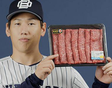 阿部が特にこだわったのは「宮崎牛ならではの脂の甘みを生かすこと」。既製のタレをベースに、甘みや辛みの足し算と引き算を繰り返して味を調整。最終的には、砂糖の分量を極力抑え、風味豊かな新生しょうゆの香りを生かした味に仕上げた。「あっさりめのタレにすることで、宮崎牛の甘味がぐっと引き立ち、絶妙なハーモニーを生み出します」と満足気の阿部。さらに、大醤株式会社の新生しょうゆを原材料とすることで、大阪の球団らしく「大阪産」マークをラベルに掲出することができた。