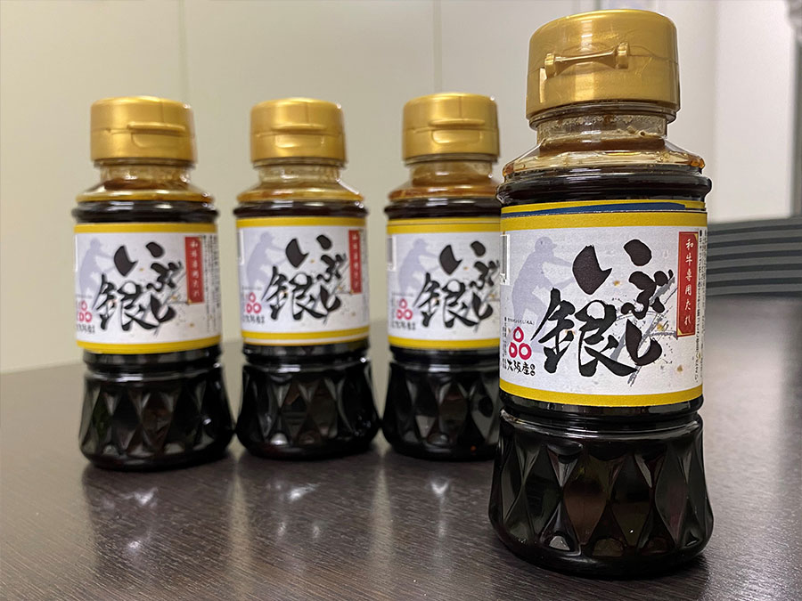 タレの名前にもこだわりがある。「野球っぽい言葉と、タレを結び付けるのはすごく大変で…、悩みましたよ」と眉間にしわを寄せて振り返る阿部。ファンクラブグループと赤丸食堂で数多くの候補を出して命名に挑んだ。選球眼をもじった「選牛眼」が有力候補に挙がる中、最終的に投票で決定したのは「いぶし銀」。阿部は「タレは主役でなく脇役。クリーンナップというお肉につなぐ二番打者のイメージです。ぴったりの名前になりました」と納得の表情で頷く。赤丸食堂の提案で、ラベルにはバントをする選手のシルエットが。いぶし銀の名前にふさわしい、渋めで和風テイストのデザインに仕上がった。