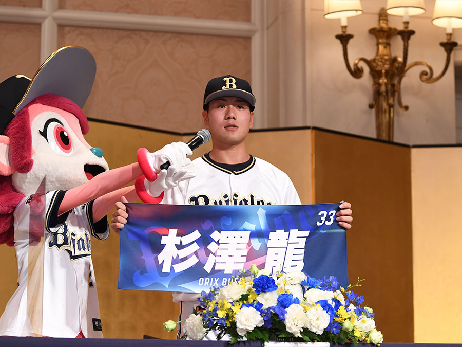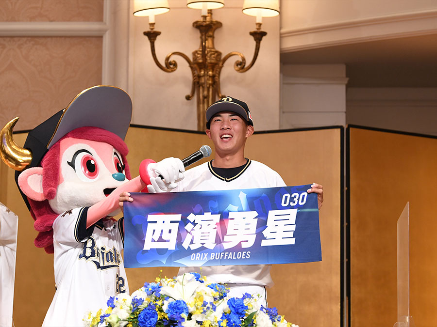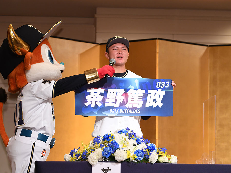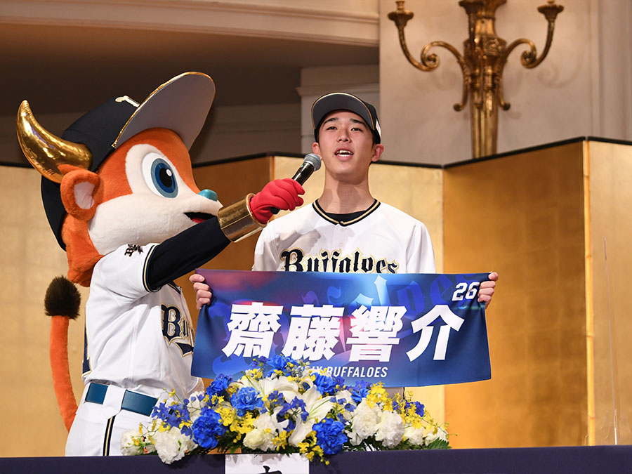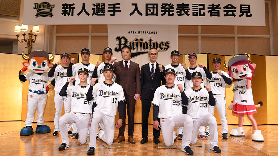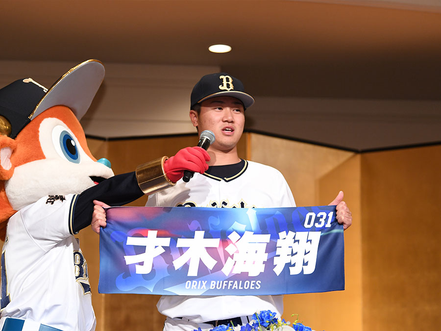 11月30日に行われた、オリックス・バファローズ新人選手の入団発表記者会見。選手入場の際には、大前一樹アナウンサーによって選手一人一人の紹介文が読み上げられました。そのもととなる台本は、球団広報部が愛情を持って作成しています。プロフィールはもちろん、仮契約時のコメント、スカウトコメント、新聞記事などあらゆる情報を集約して書き上げました。当日の写真と併せて、ぜひお読みください。