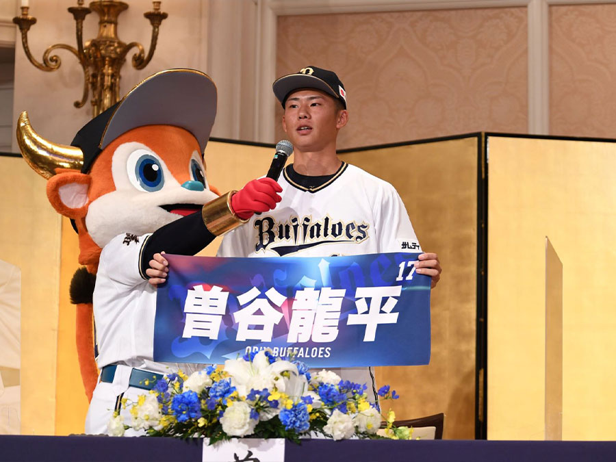 ドラフト1巡目指名。アマチュア球界ナンバーワンの即戦力左腕。奈良県斑鳩町出身のサウスポーが小学生のときに書いた将来の自分へのメッセージは「オリックスに入ってください」。こどもの頃の予言を実現し、今あらたに目指すのは開幕からのローテーション入りと新人王。今日が22歳の誕生日。白鴎大学からの入団。背番号17、曽谷龍平!