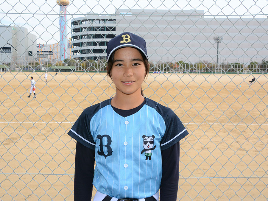 女子も負けていません。小川監督に「プレー面ももちろんいいですが、芯の強さを持っている選手」と評されるのは、小学1年生の頃から野球に熱中する叶涼奈選手。舞洲・2軍施設のお膝元にある、此花バファローズから選出された内野手です。しっかりとボールを見極め、パワフルなスイングで強い打球を放ちます。沖縄県の高校で“野球留学”しているお兄さんに「活躍して良い報告がしたいです」と張り切り、ハイレベルな選手たちからの刺激を受けながら元気よくグラウンドを駆け回ります。将来の夢は女子プロ野球選手です。