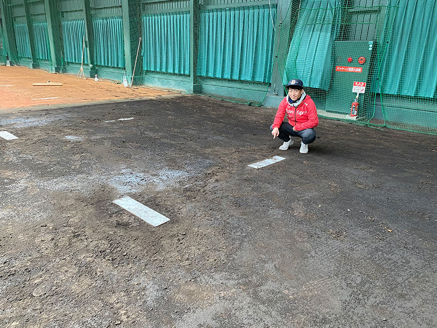 キャッチャーに向かって牽制球を投げる練習ができるようにピッチャーズプレートも各レーンに二つずつ設置されています。また、人工芝を敷いているため、ユニフォームを汚さずにストレッチも可能。「快適に練習できる環境を追求した、自慢のブルペンです」と矢野さんは自信を持って話します。