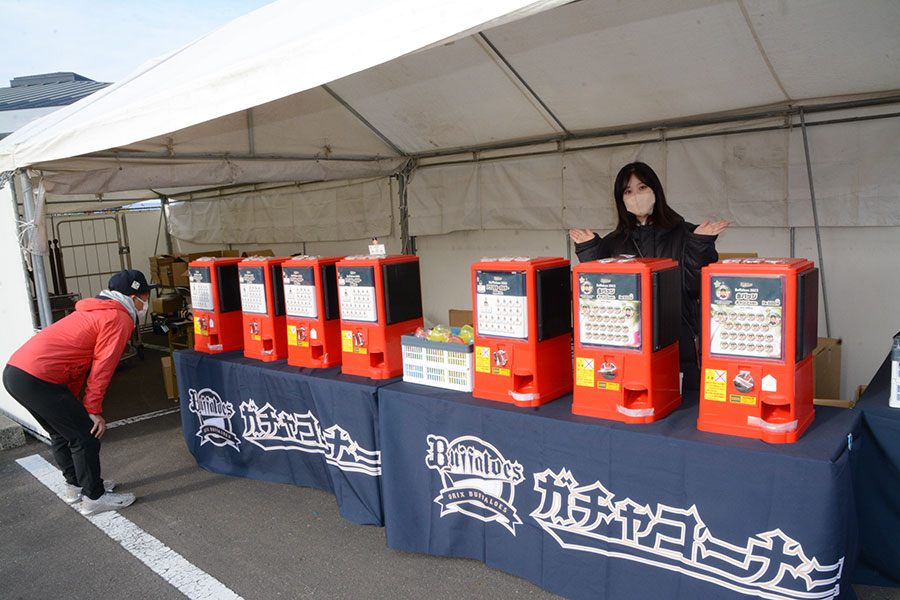 ガチャガチャ、エアーくじ、コロコロチャレンジも大人気。矢野さんは「昨年、選手たちが楽しそうにガチャガチャに挑戦する様子をSNSに投稿したことで、さらに人気が高まりました」。土日には子どもたちで行列ができることもあるそうです。
