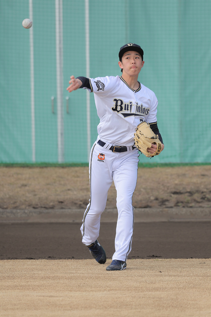 テレビで見ていた憧れの選手たちがすぐ近くにいる環境に「少し気疲れもしています」と緊張ぎみの表情。先輩たちのハイレベルなプレーを目の当たりに「キャッチボールも一つ一つ重いし、ダッシュも速いし、体力も全然違いますね」と刺激を受けています。平野佳寿投手と話す際には特に緊張したそうですが「すごく優しい方でした」。大先輩とのやり取りに心を弾ませたようです。