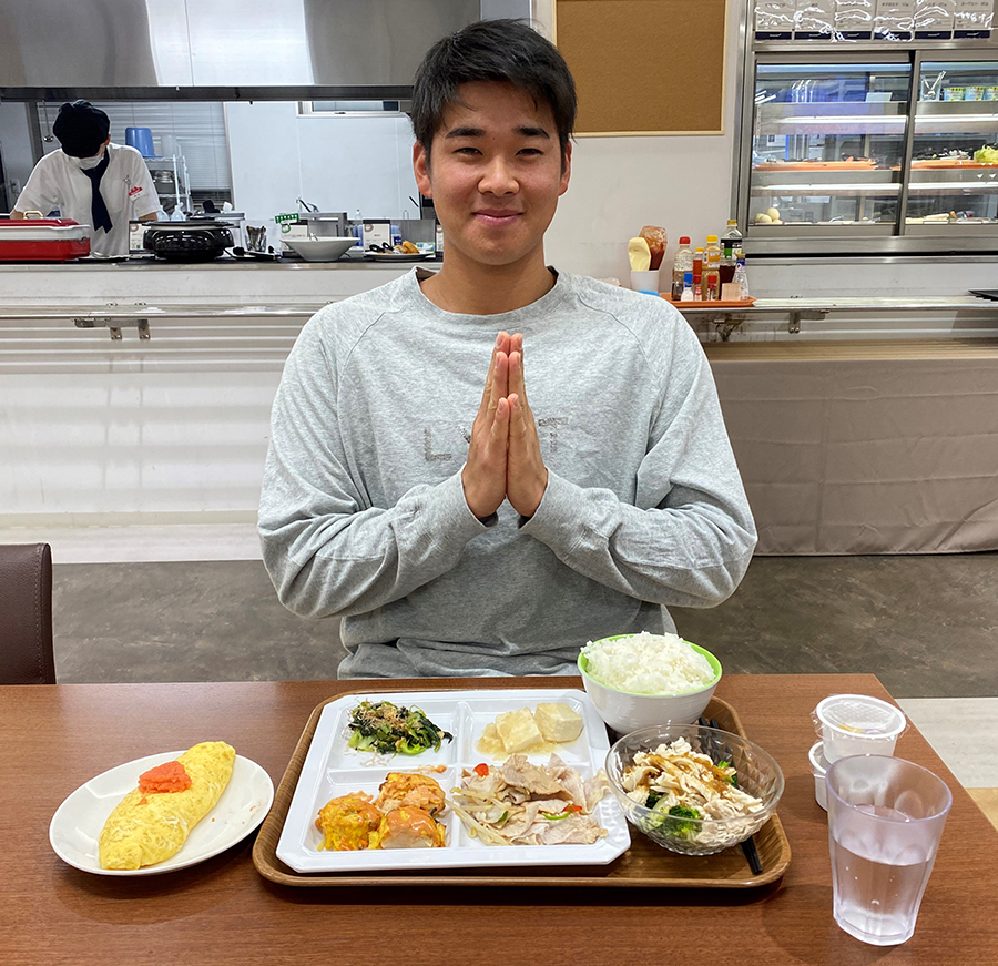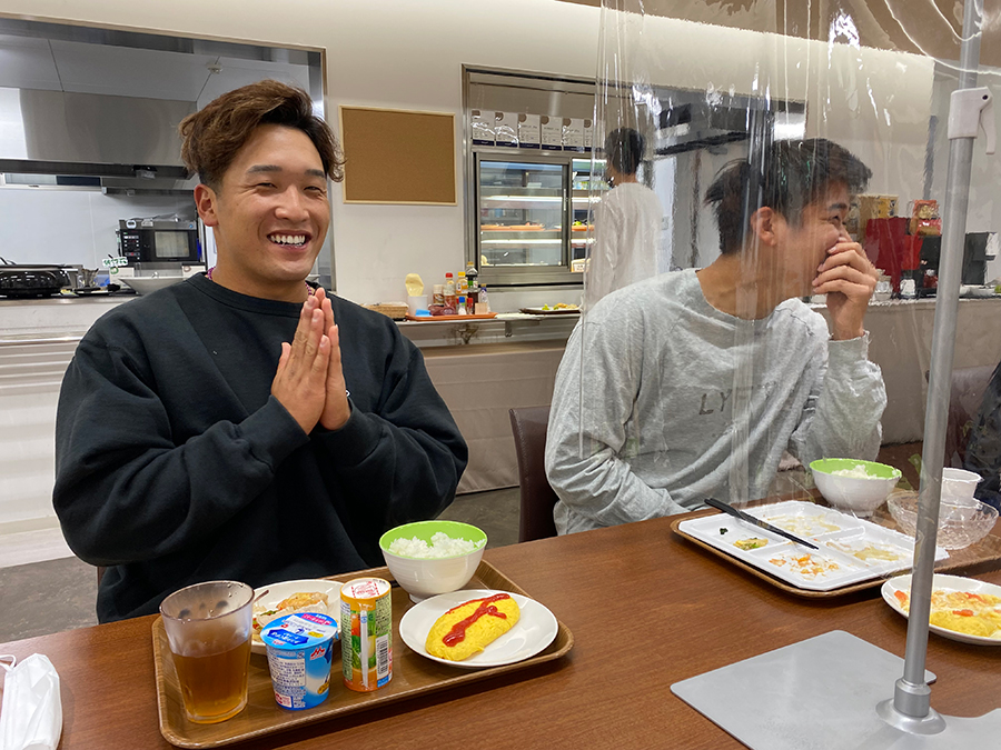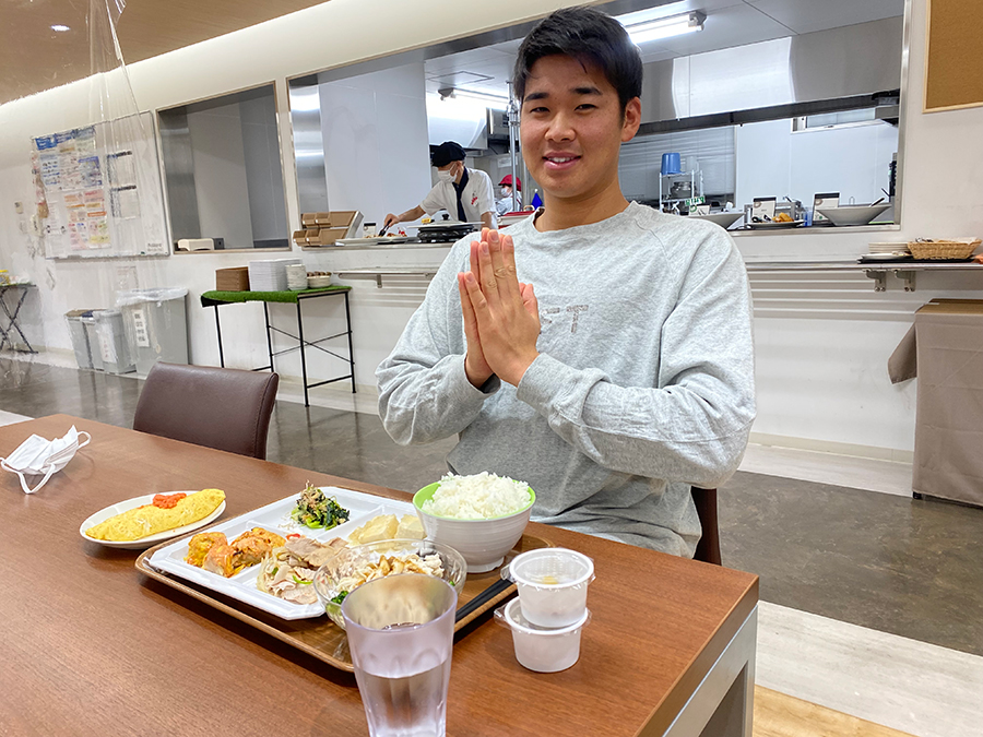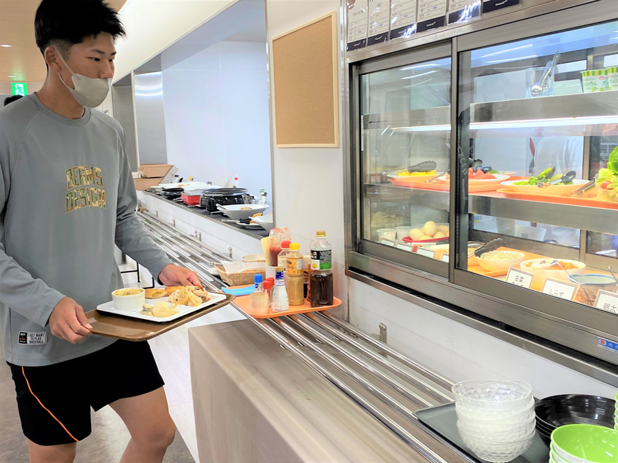 増量したい選手、減量したい選手、それぞれが自身に必要な栄養を意識しながら食事を楽しんでいます。中川拓真選手も「品数が多いのでバランスよく食べられます。毎日食べても全然飽きないので、すごく満足です」と寮での食事が気に入っている様子です。