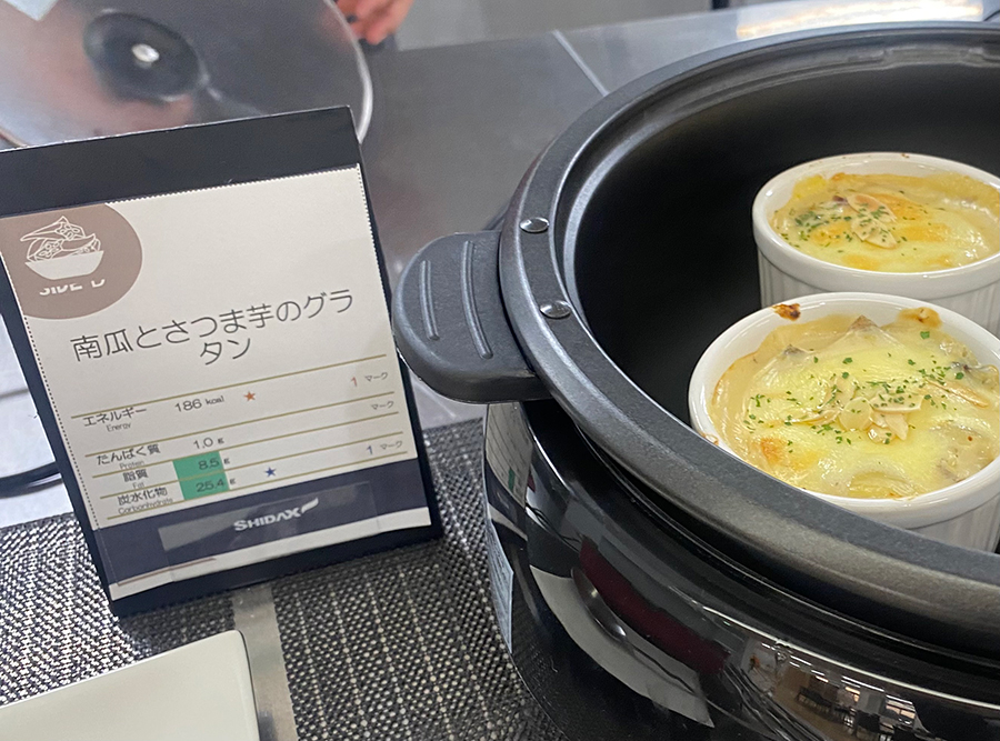 周囲の勧めに後押しされて、筆者もこの日の夕食をいただくことに。提供開始時間から30分以上経っていましたが、ホットプレートでおかずが常時温められているおかげで、できたてのようにほかほかです。