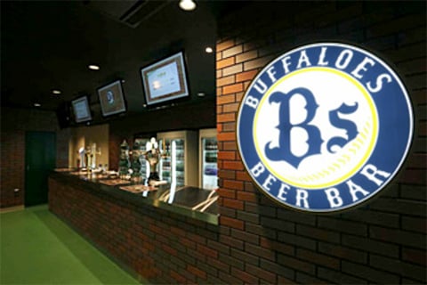 レンガ調の店内ではオシャレなタップハンドルのサーバーから注がれる旨い生ビールが味わえ、球場売店にはない開放感とカジュアルなスタイルでお楽しみいただけます♪