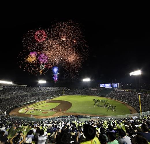 スポンサー提供によるプレゼント企画や参加型イベントなどで、試合前後も球場が活気づきます。