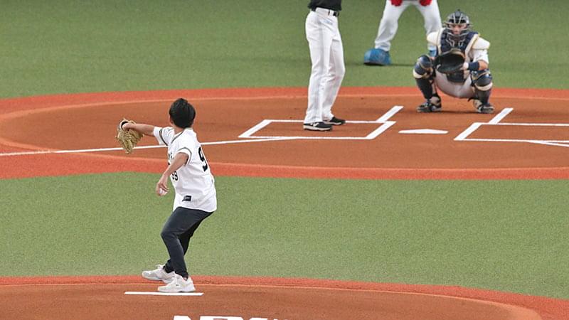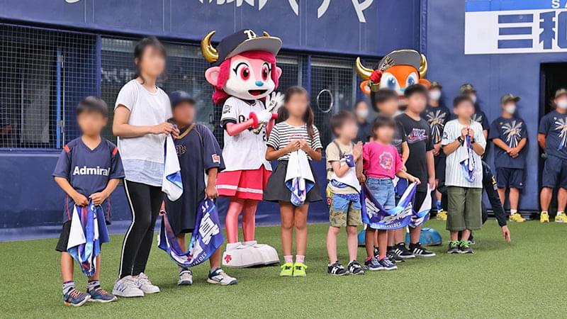 選手と一緒にベンチから各守備位置まで一緒に走り、選手からサインボールを受け取る (中学生以下対象)