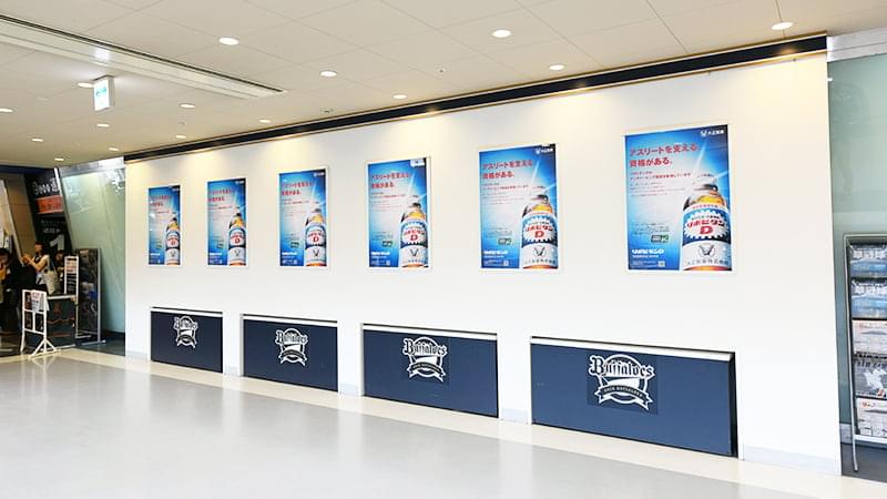 球場内通路に30枚までポスターを掲出し、来場者に社名・商品名をPR