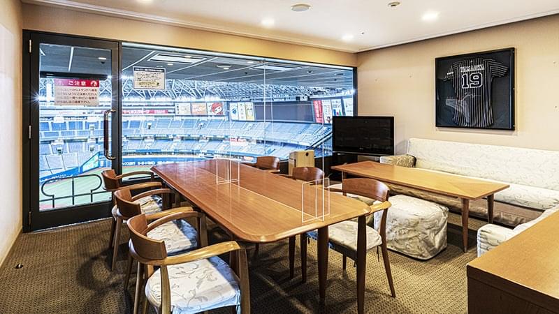 グラウンドレベルに位置するネット裏VIPルームをご利用いただけます。お部屋では、専用のご飲食メニューをご用意しております。
