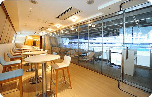 シーズンシートのお客様が利用できるラウンジスペース「CLUB STADIUM」でゆったり練習風景を見学いただけます(開門30分前までご利用可)。