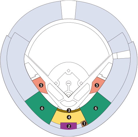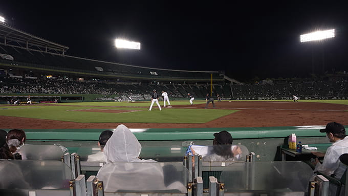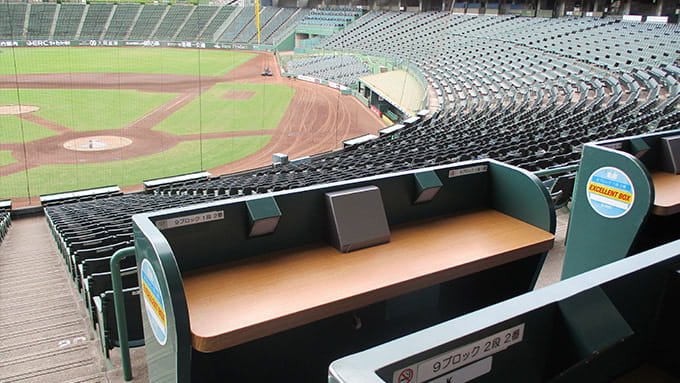 すべてを見渡せる圧巻の180度パノラマ観戦。バックネット裏特別席。